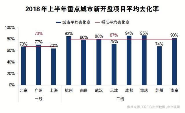 “去化率”是指銷售量與供應量的比率,是衡量房地產(chǎn)銷售狀況的一個重要指數(shù)。2018年上半年,全國14個重點監(jiān)測城市新開住宅項目當天去化率均值為89%。重慶、成都、杭州、南京4個城市去化率超過平均水平。近九成的去化率,證明目前房屋仍需求緊俏。